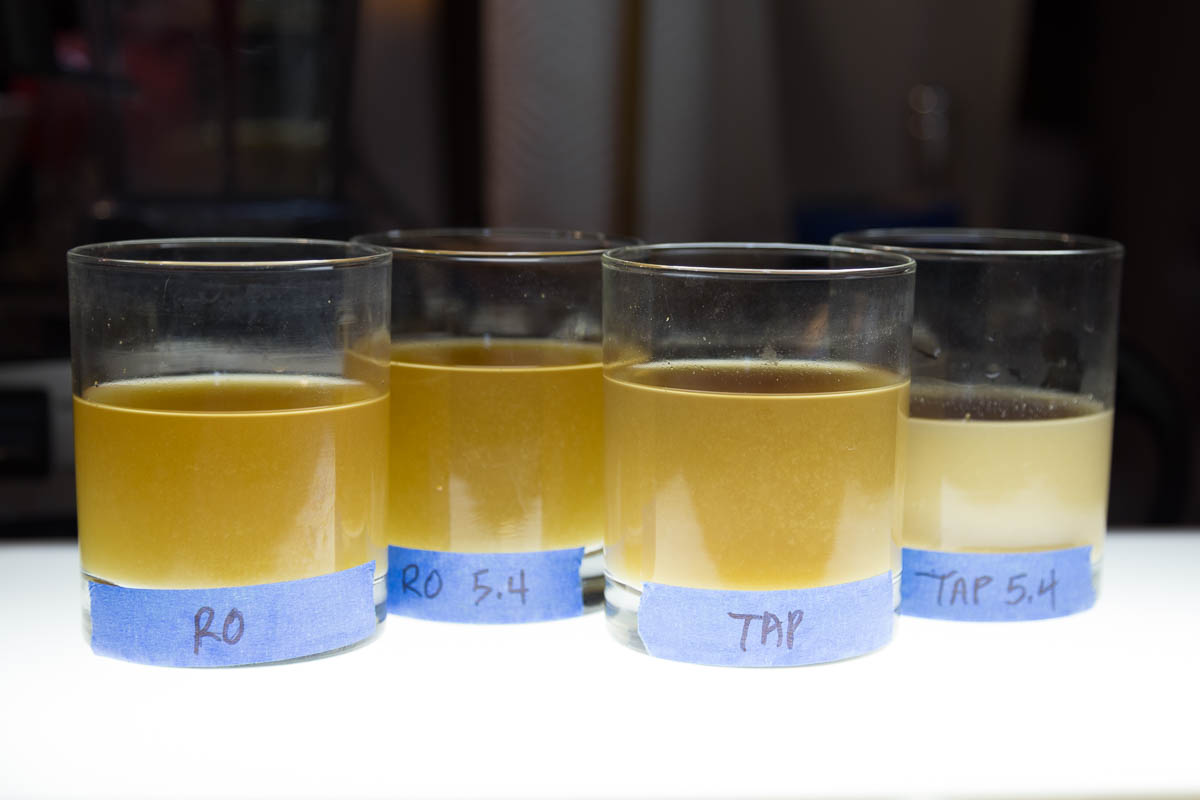I was cruising through Facebook the other day, and the ebullient Malcolm Frazer (one of the Brülosophy crew) posted a picture of tea brewed with tap water and with distilled water. It was a tremendous example of the effects of alkalinity and the extraction of tannins (polyphenols) from plant matter. The distilled sample was bright red and very clear. The tap sample was dark and murky. All of us beer nerds piled in and commented. Beautifully illustrated, and yet that was tea not a barley mash. With Malcolm's permission, I am stealing this example to prove a point.
