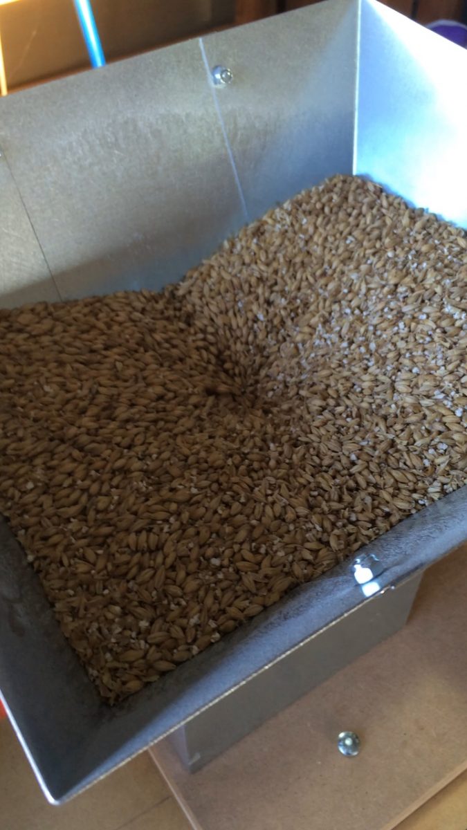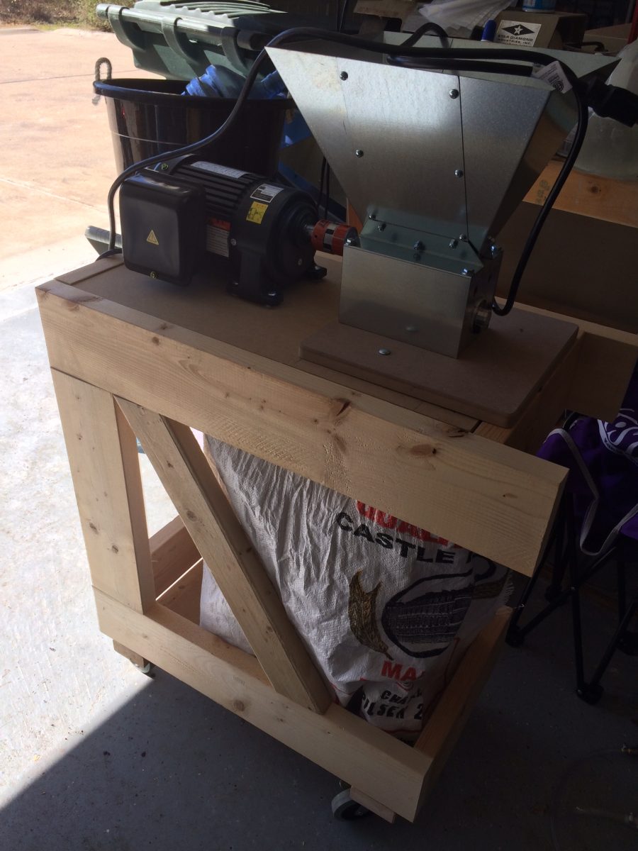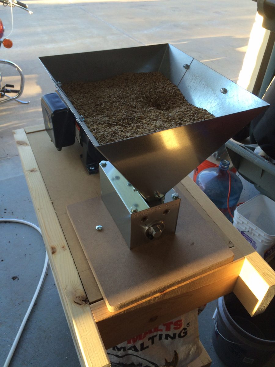 As mentioned in an earlier post, I built a new grist mill and case. This was the first chance to brew with the crush. I was fairly happy with the results, but may make some adjustments along the way. I will say that it was a bit underwhelming watching the 20# of grain burned through in about a minute. The skirt worked well, no dust kicked out to speak, just what kicked pouring the malt into the hopper.