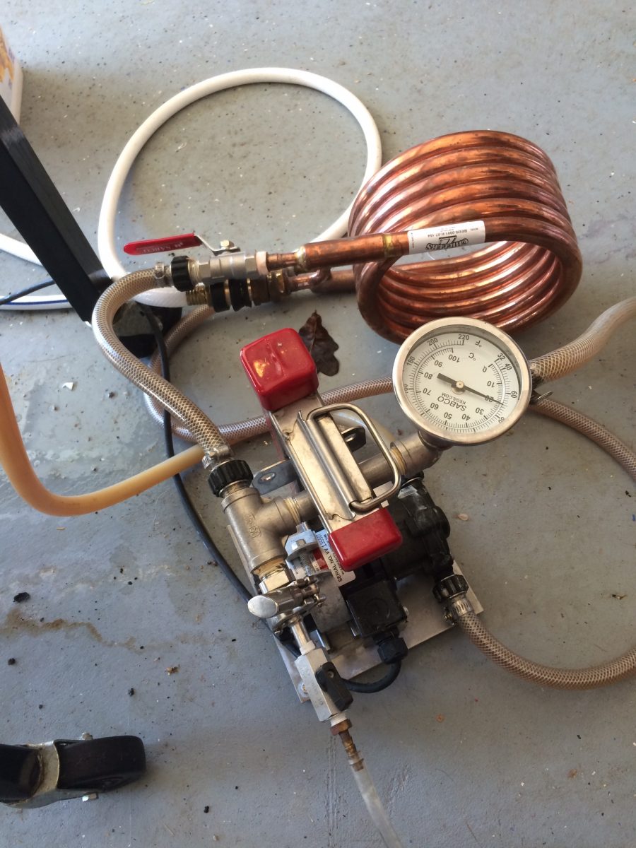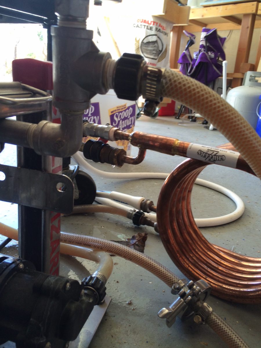 I added my last addition and prepared to knock out. I decided to proceed with ground water, as opposed to circulating ice water, and still knocked out at 66F, perfect for pitching. I have modified my Chill Wizard to use a convoluted counterflow chiller rather than the big plate chiller. I have been frustrated with the difficulty in keeping the plate chiller clean. I chilled and pumped directly into my SS BrewTech 1/2 Barrel Chronical. Hit target gravity right on.