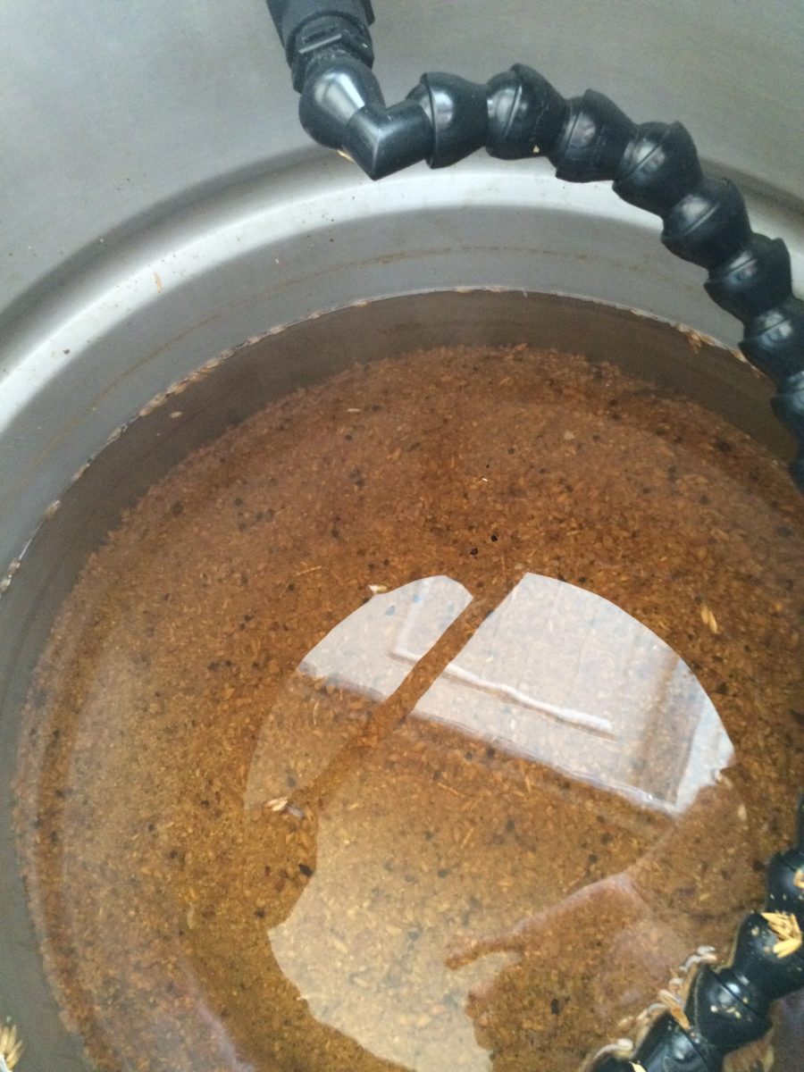 The Brew Magic deploys a hybrid fly sparge method. I establish the flow rate with the first runnings, and match the pump over from the HLT to that rate. Circulation also introduces a rotation of the wort at the top of the mash and pulls the liquor down through the MLT. The result is very clear wort through the process.