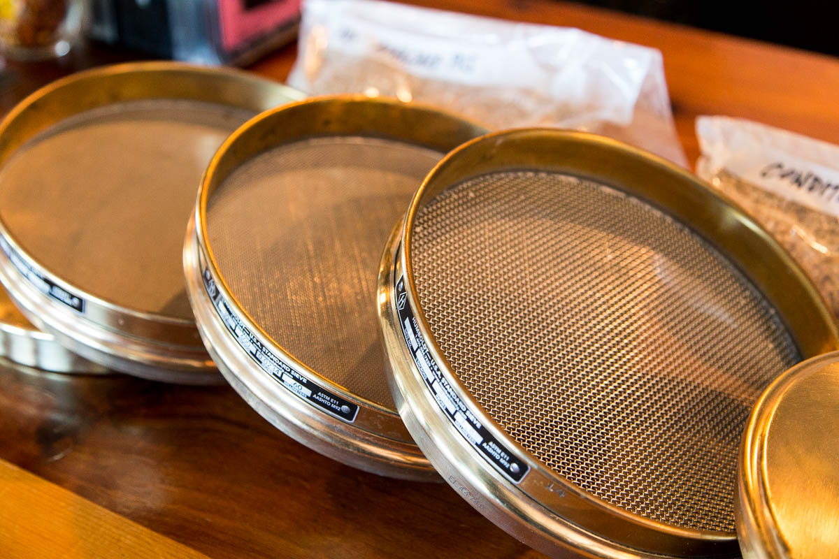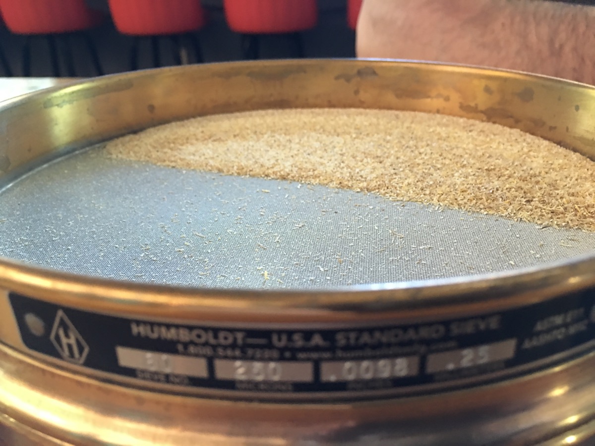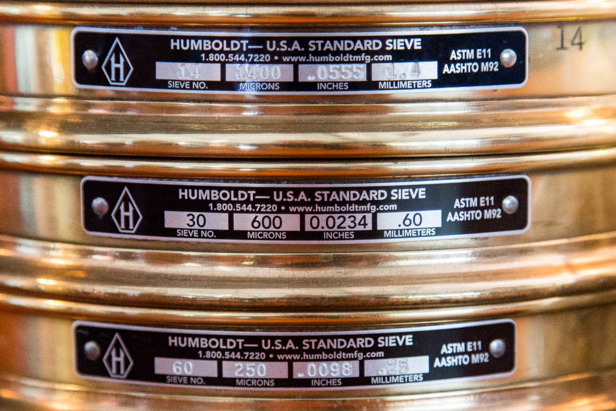 The ASBC has testing standards that separate particles into 4 sizes, with percentage recommendations for commercial systems. Brewers can purchase specific graduated sieves that nest, featuring a mesh filter that gets finer for each sieve, and a pan to collect the finest flour. Brewers can then analyze their mill setting for large, medium, small particles as well as flour, as a percentage of the whole. These numbers are useful to match grit sizes between batches or different malt choices, or simply resetting after mill cleaning and maintenance.